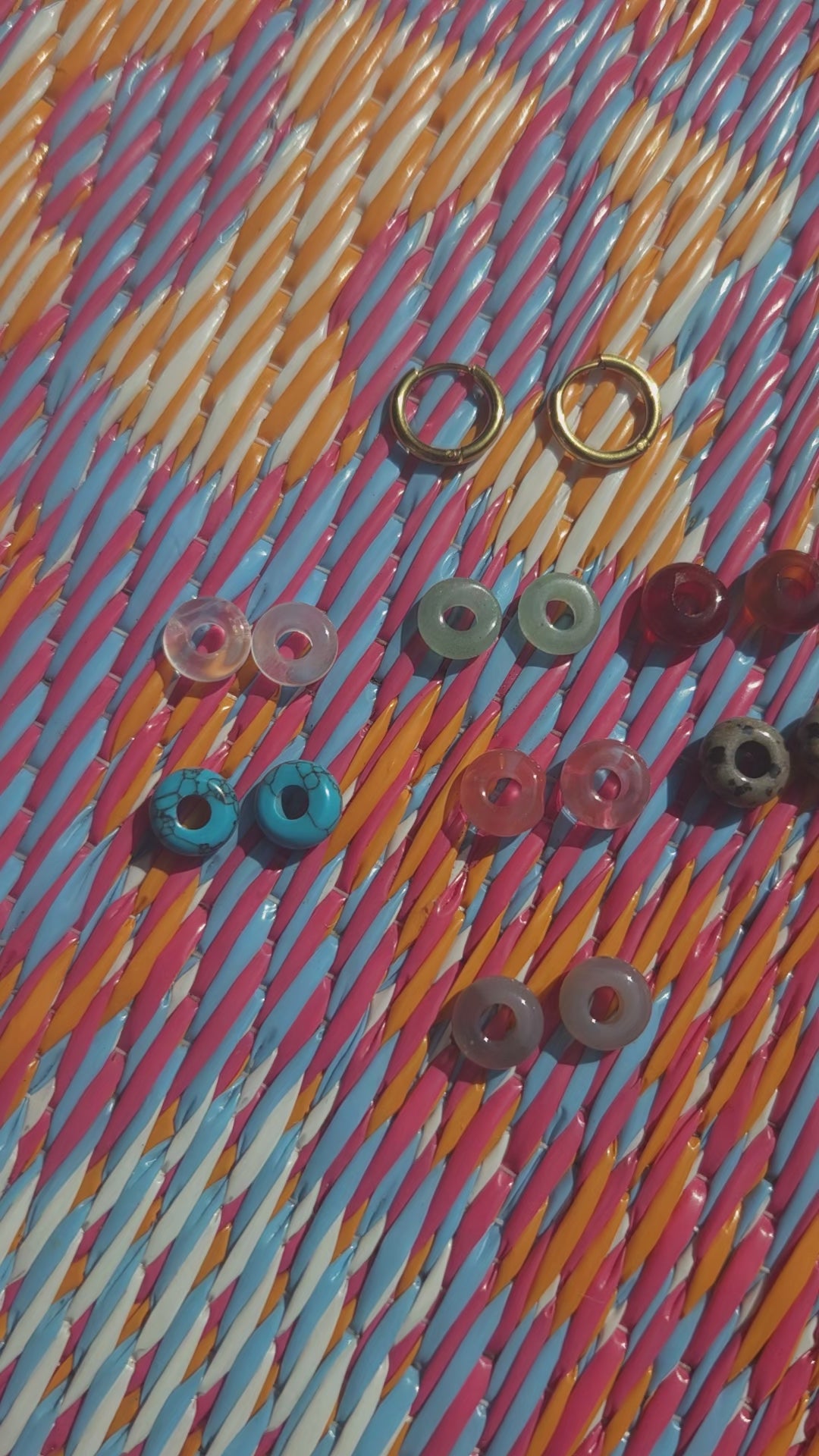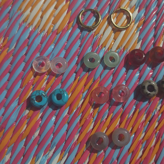 1 set of gold filled hoops with our gorgeous donut natural stones.