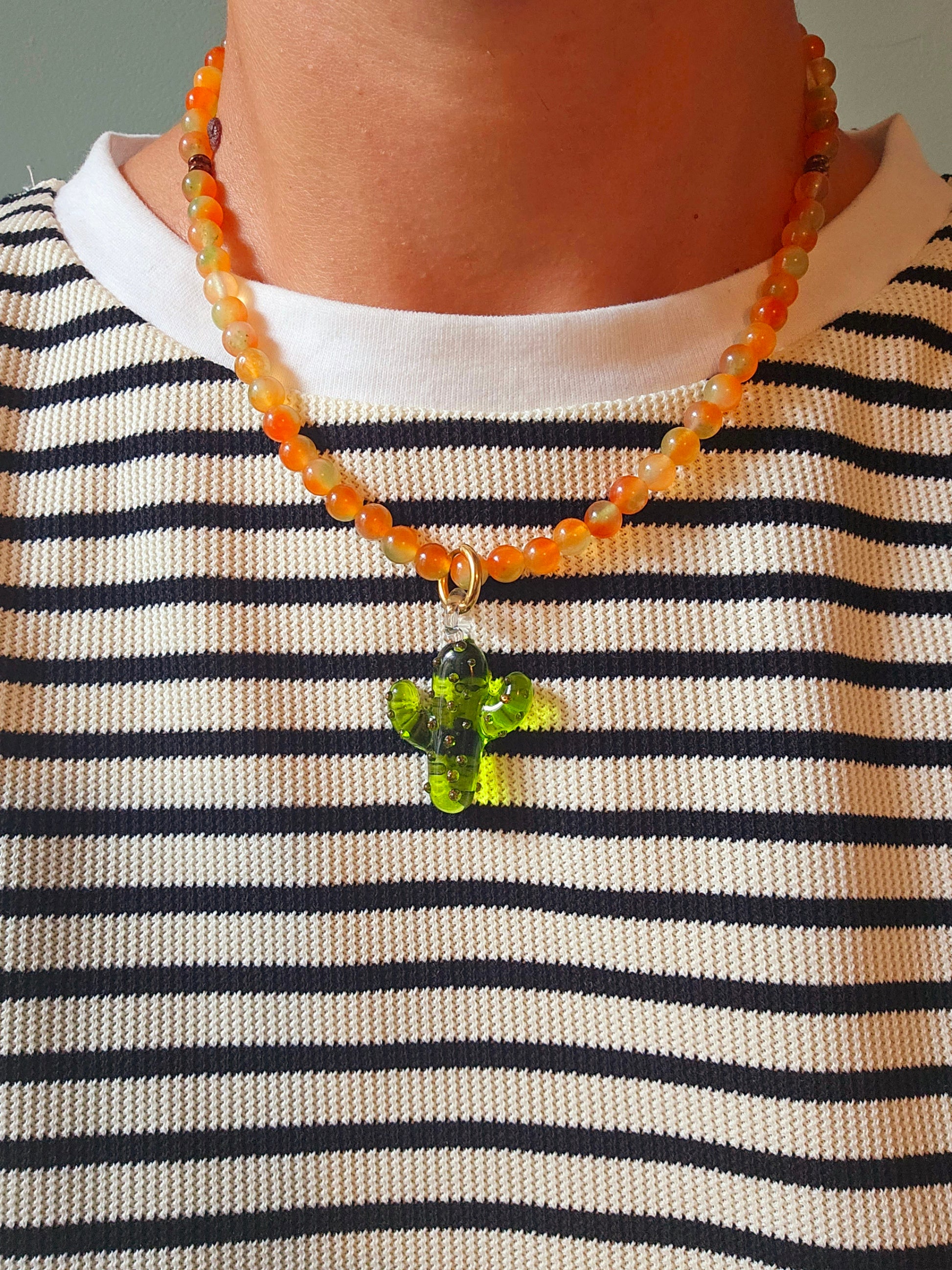 Green glass cacti pendant