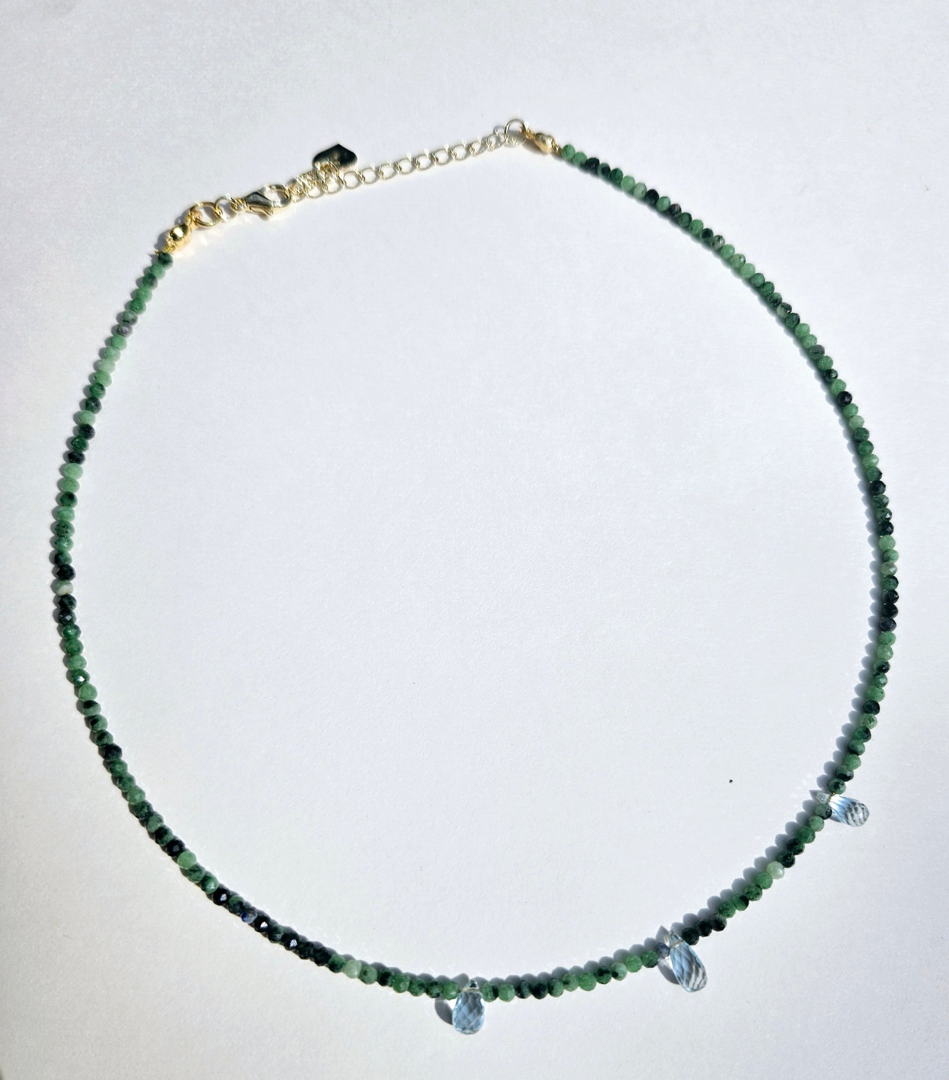 Epidote zoisite 2mm beads with 3 topaz droplets. Gold filled hardware.