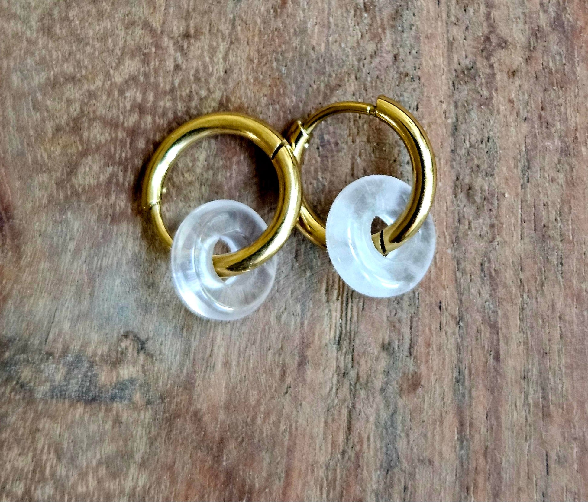 Quartz stone hoop earrings
