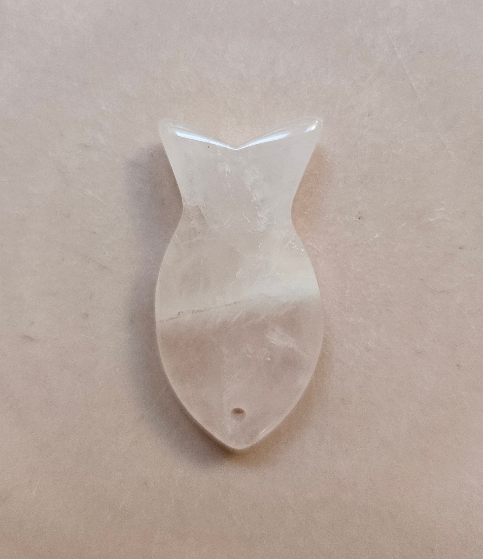 40 x 20 x 6 mm natural rose quartz fish pendant.