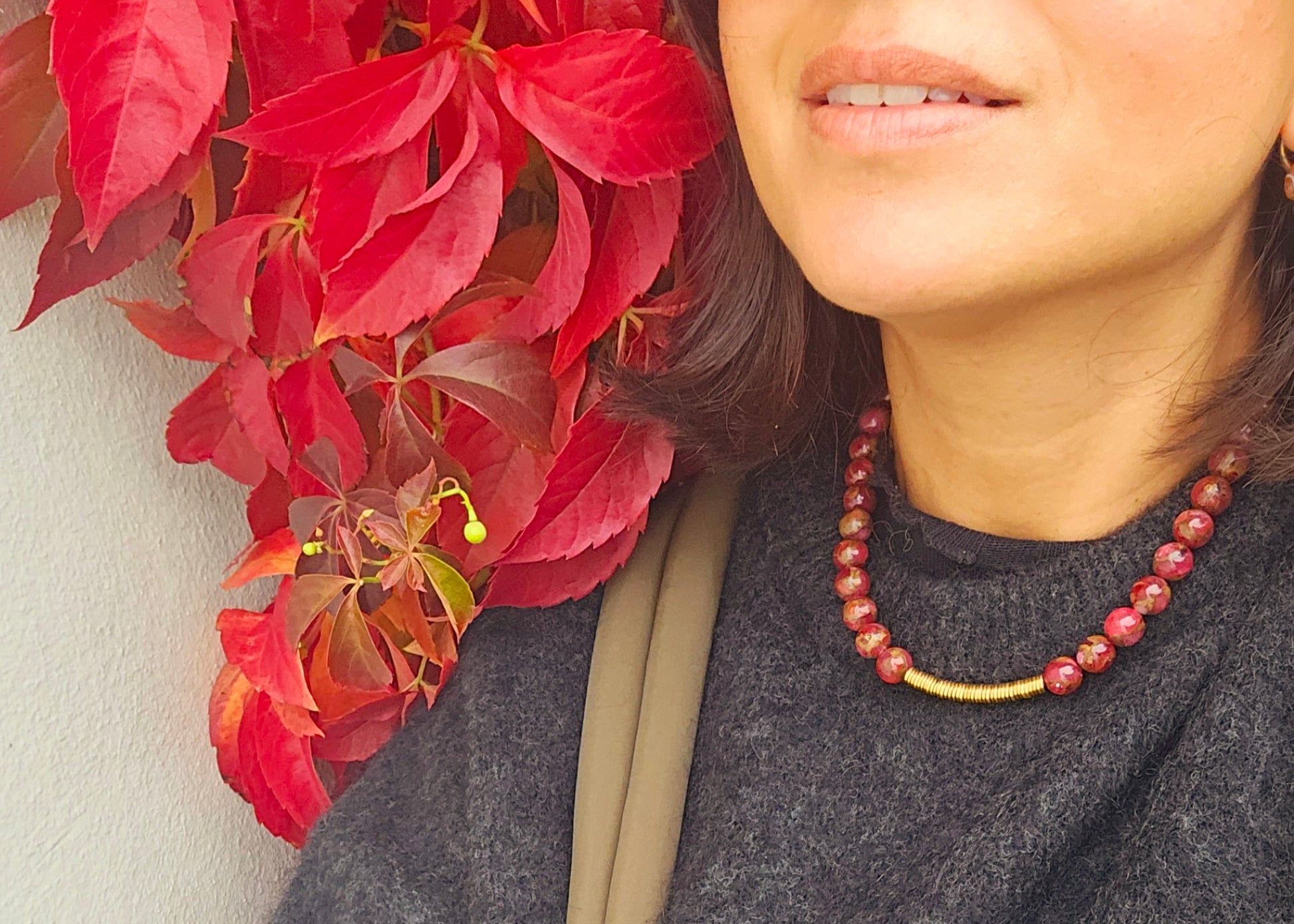 Beautiful red cloisonne beads with gold filled spacer discs.
