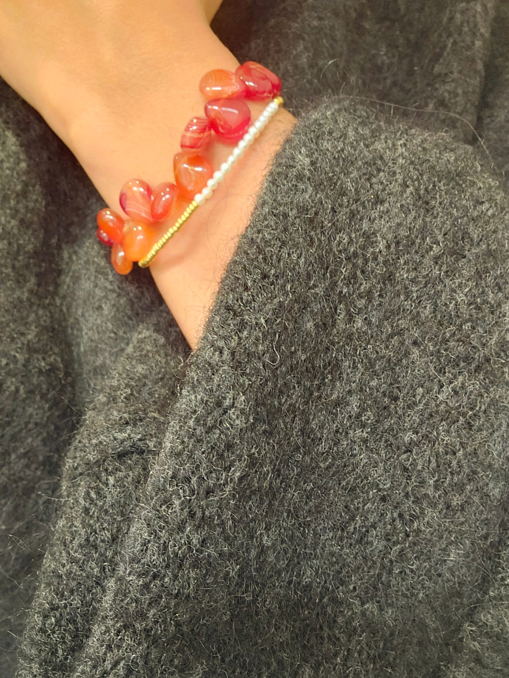 Red agate 10x5 mm drop shape beads, gold filled hardware with a 15mm extender.