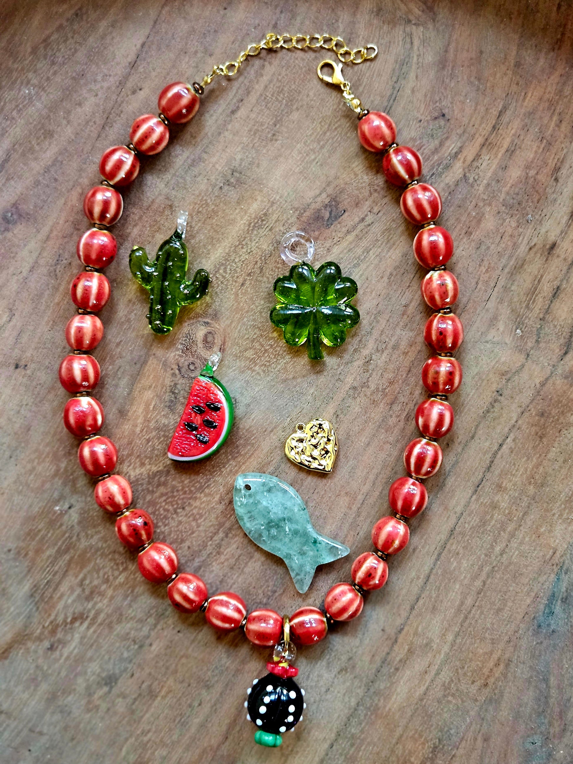 Vintage ceramic and hematite beaded necklace (add your pendant separately)