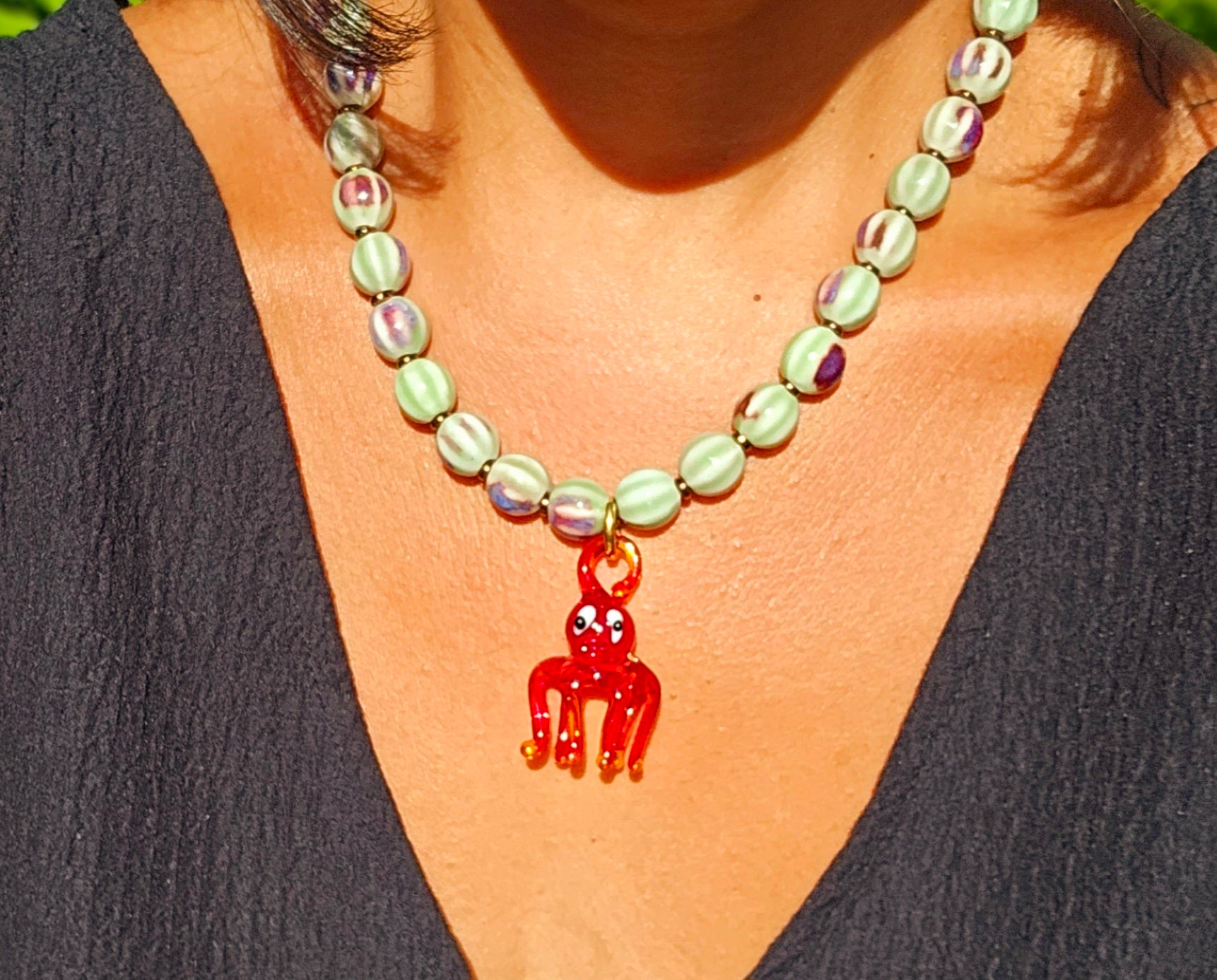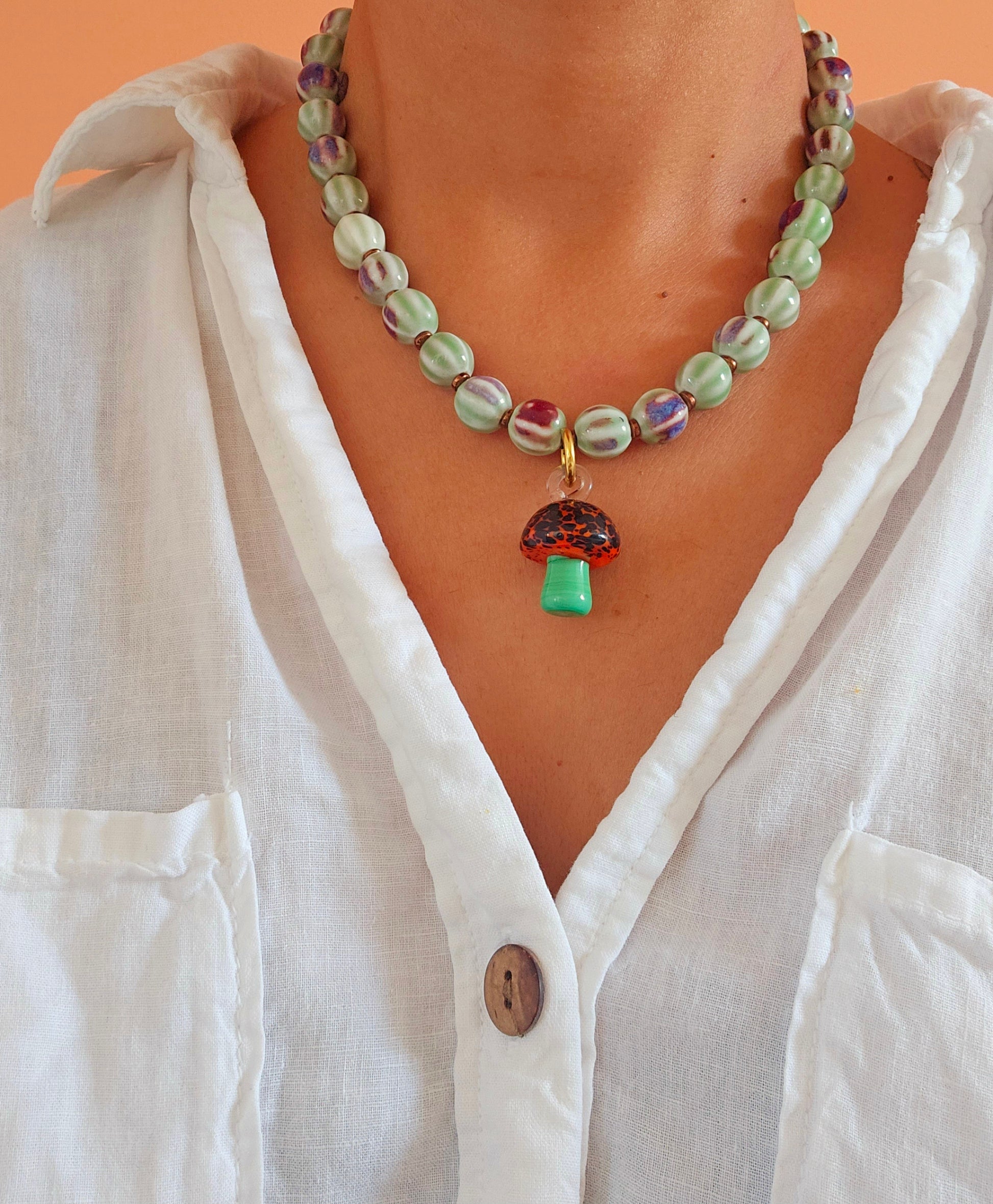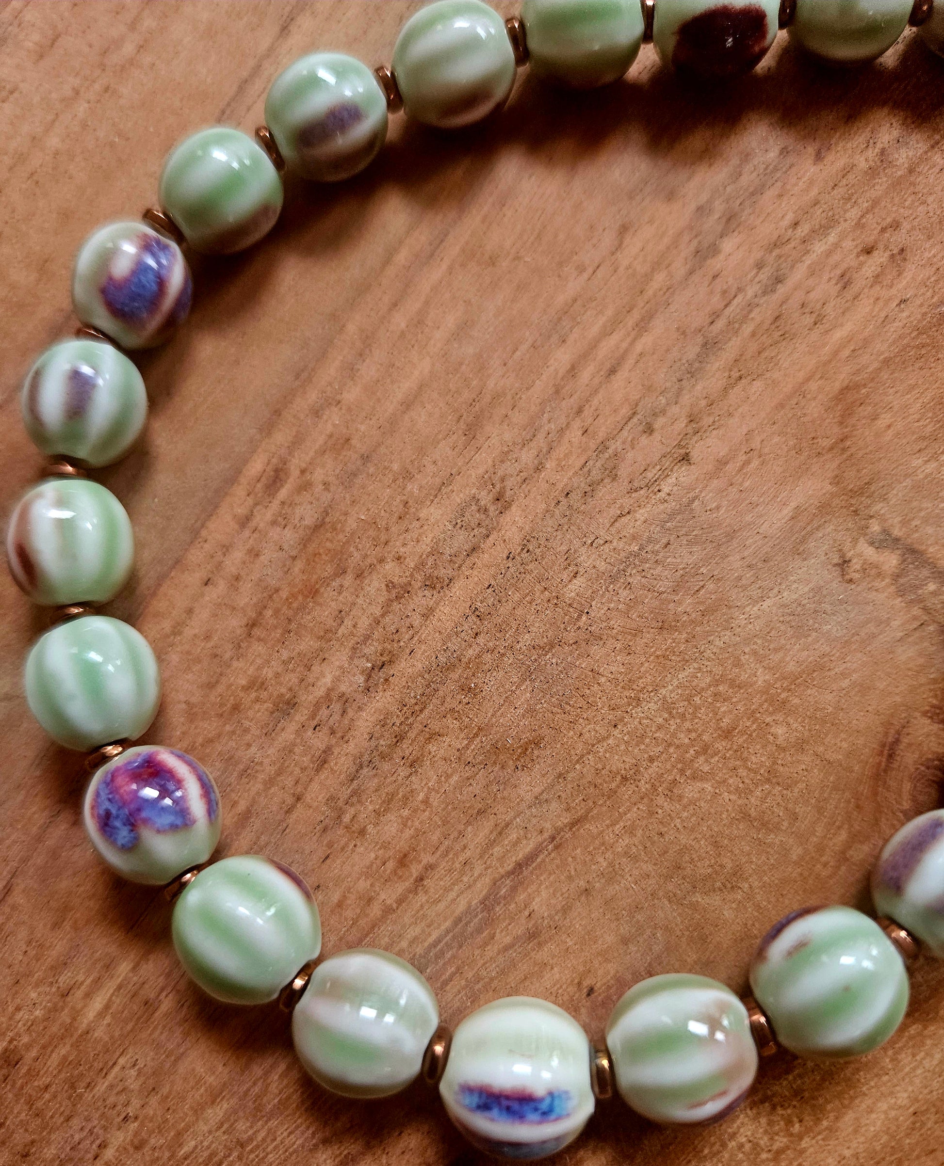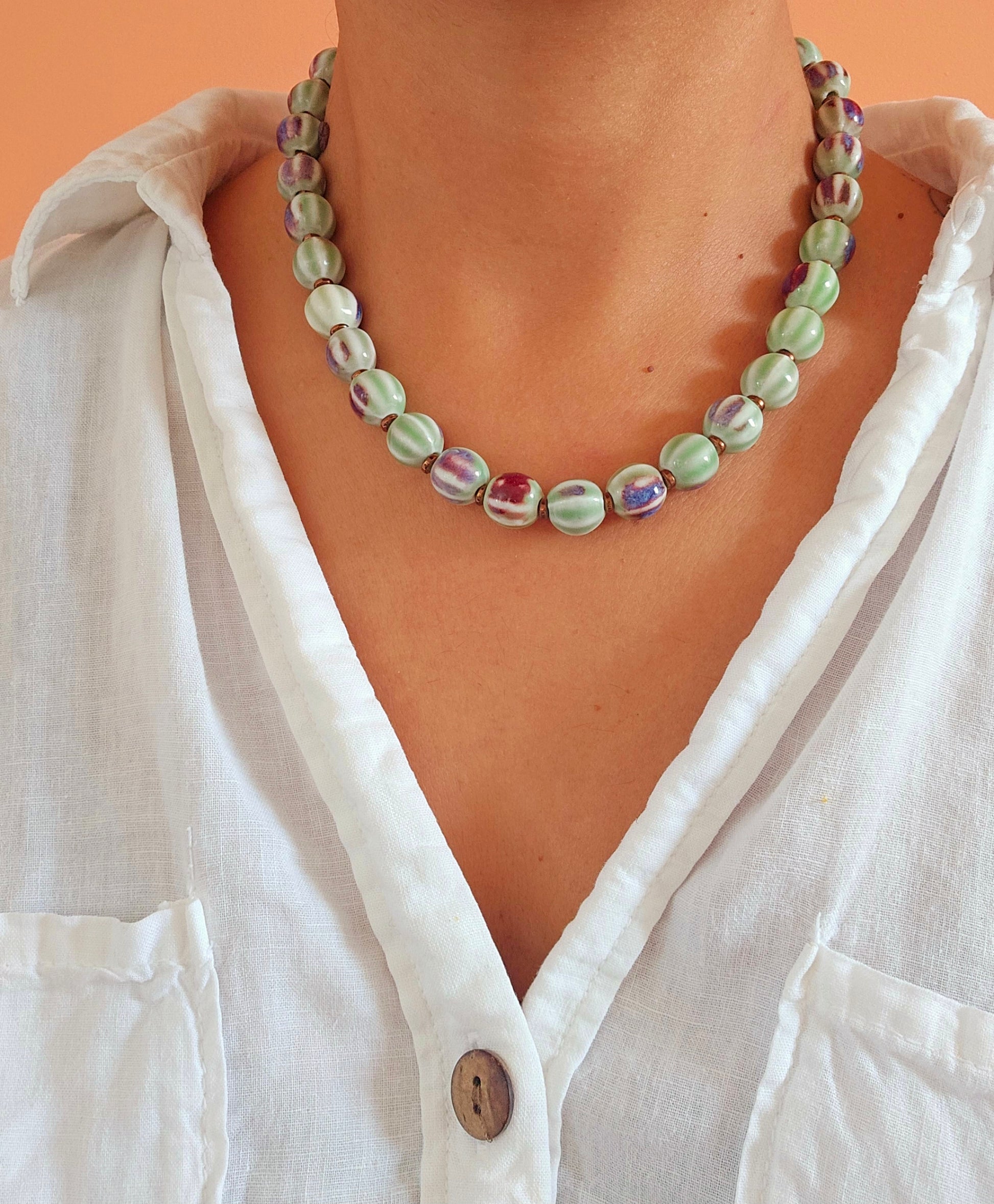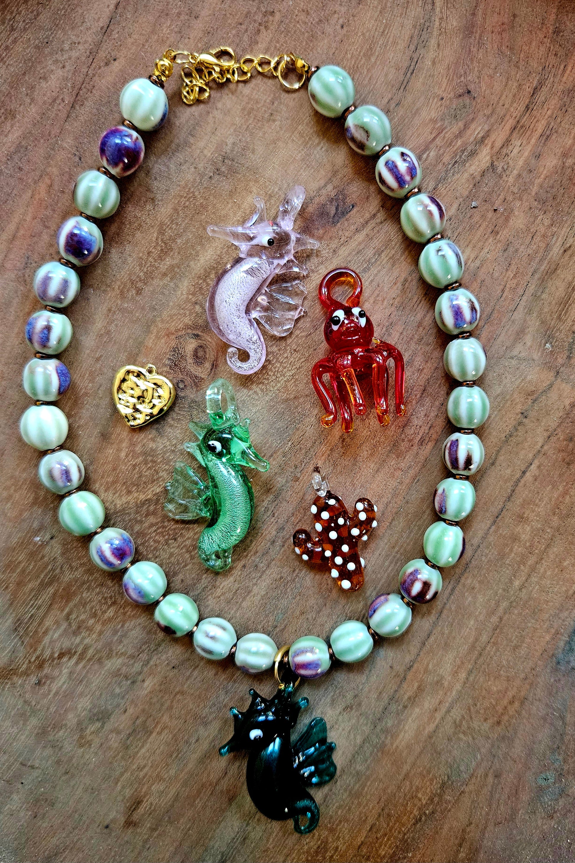 Vintage light blue and purple ceramic and hematite beaded necklace (add your pendant separately)
