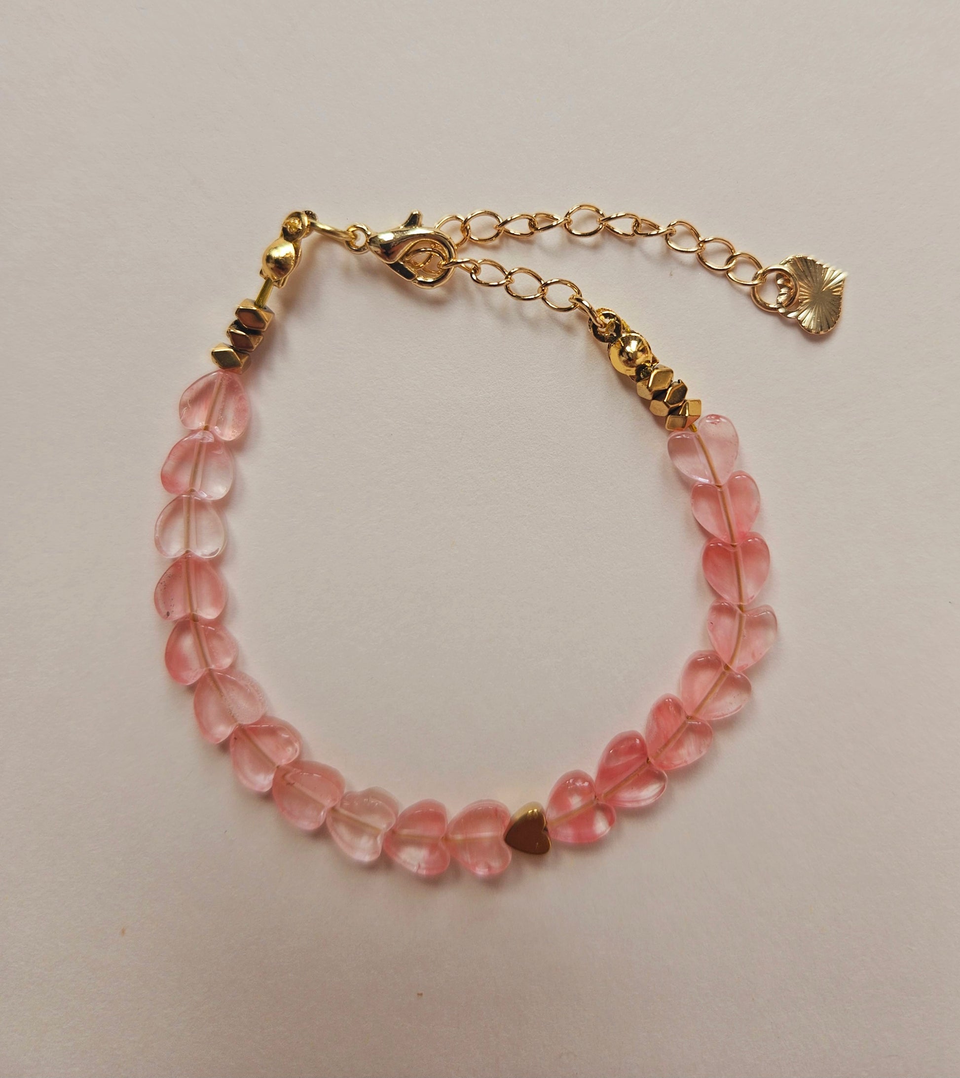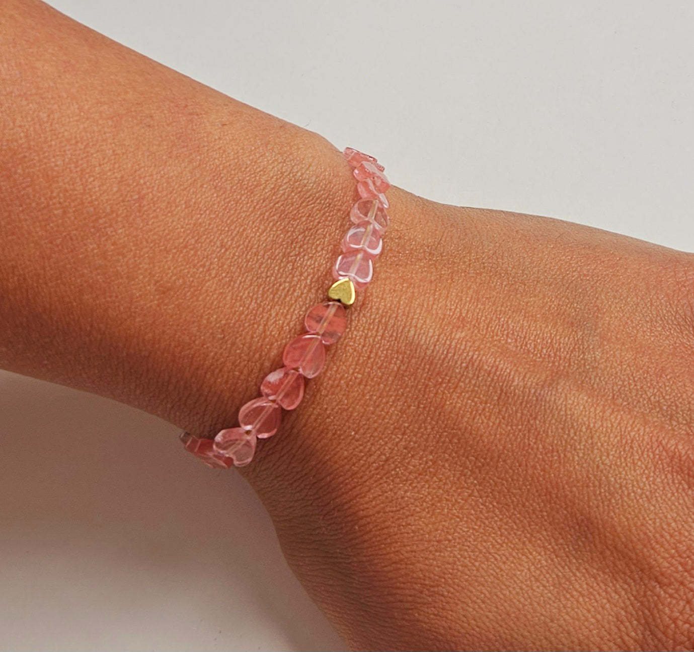 6mm natural watermelon heart beads with a gold filled heart bead. All gold filled hardware.